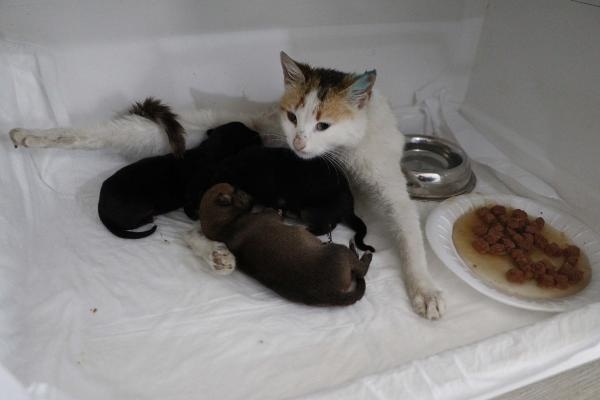 Trafik kazasında yaralanan, hayvanseverler tarafından götürüldüğü özel klinikte sezaryen ile 3 yavrusu alınan köpek, kurtarılamadı. Yavrular belediyenin Sokak Hayvanları Bakım ve Rehabilitasyon Merkezi'ne teslim edildi. Ardından da belediyenin sosyal medya hesabından duyuru yapılarak yavru köpekler için acil sütanne arandığı belirtildi. Duyuru üzerine ölü doğum yapan bir sokak kedisi hayvanseverler tarafından merkeze ulaştırıldı. Kedi, sağlık kontrolü yapılıp, kısırlaştırılarak yavru köpeklerle buluşturuldu. Kedi, yavru köpekleri emzirmeye başladı.