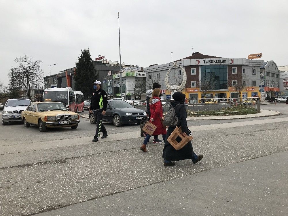 Düzce İl Emniyet Müdürlüğü Trafik Tescil ve Denetleme Şube Müdürlüğü ekipleri Valilik Kavşağı'nda sürücülere yönelik yaya önceliği uygulaması yaptı. Trafikte yaya bilincini oluşturmak amacıyla gerçekleştirilen uygulama kapsamında birçok araç kontrolden geçirildi. Trafik denetimlerinde araçlarıyla yaya geçitlerinde yol vermeyen 15 sürücüye 8 bin 970 TL ceza uygulandı. Ceza yazılan sürücülere yaya güvenliği konusunda bilgilendirme de yapıldı.