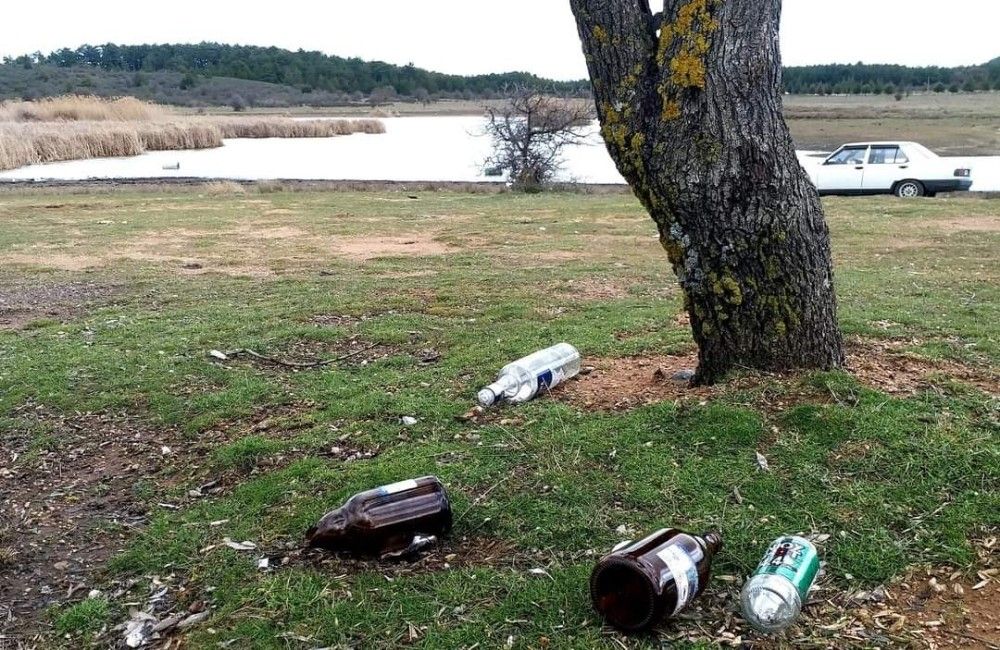 Güzelliğiyle büyüleyen Buldan'ın Süleymanlı Yayla Gölü, ziyaretçileri tarafından çöplerle kirletildi. Ağaç diplerinde ve gölün kenarından alkol şişleri bulunurken "Çevremizi temiz tutalım" yazılı levha da ters çevrildi.