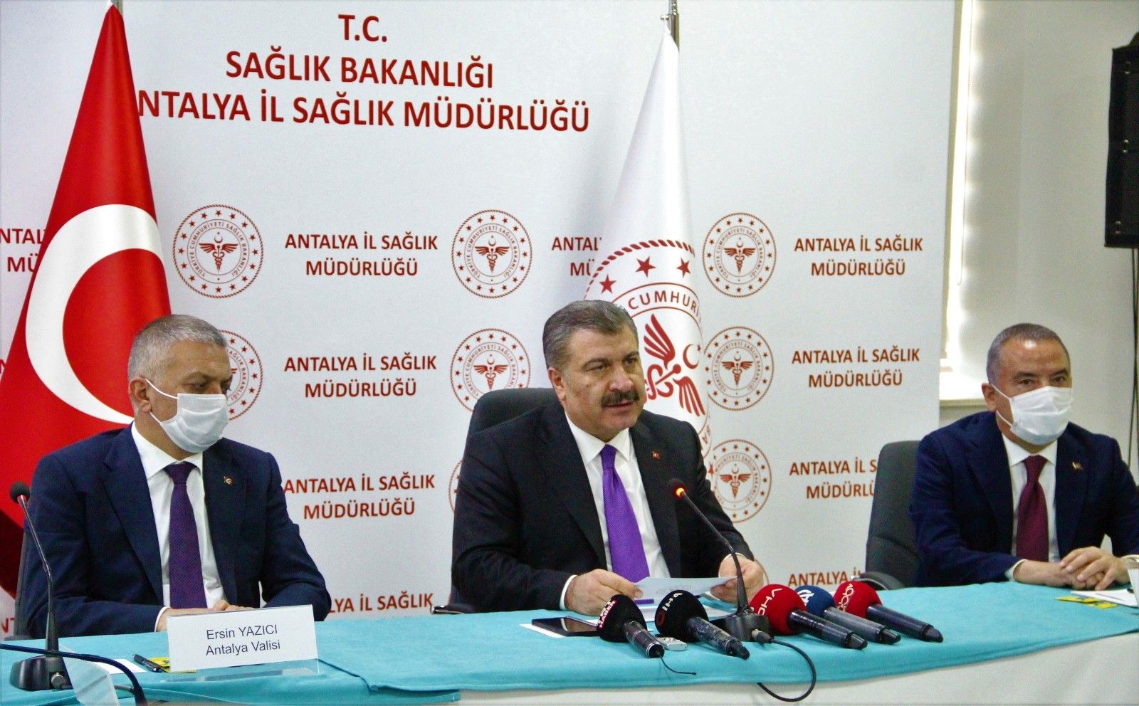 Sağlık Bakanı Fahrettin Koca, Antalya İl Sağlık Müdürlüğü'ndeki İl Değerlendirme Toplantısı'nın ardından açıklamalarda bulundu.