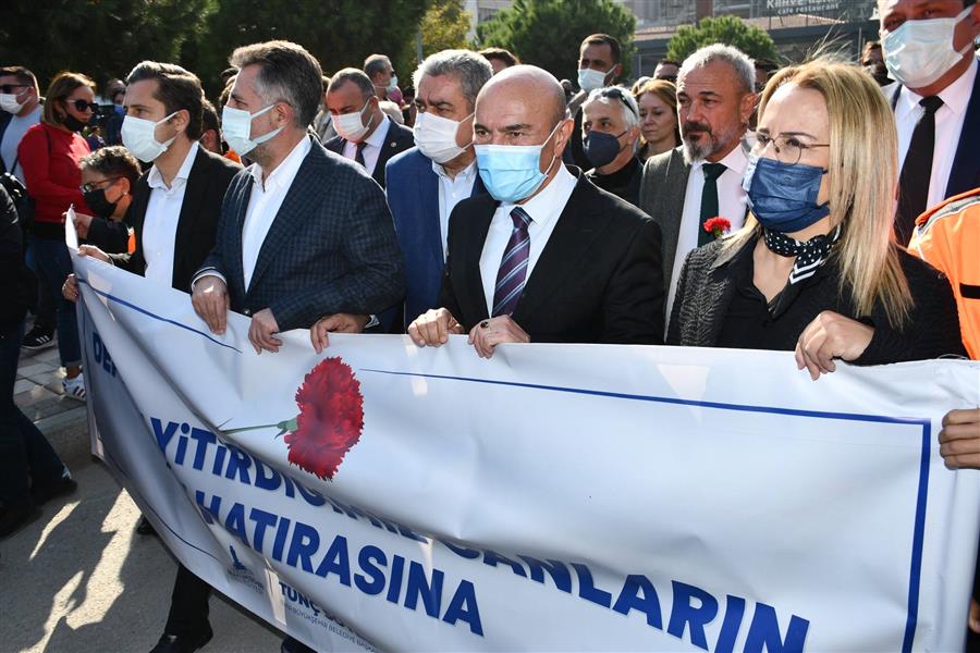 Ve ne gariptir ki, İzmir Büyükşehir Belediyesi tarafından depremde yaşamlarını yitirenler anısına yapılan "30 Ekim Deprem Anıtı"na Başkan Yücel karanfil bıraktı, açılışında yer aldı.