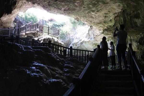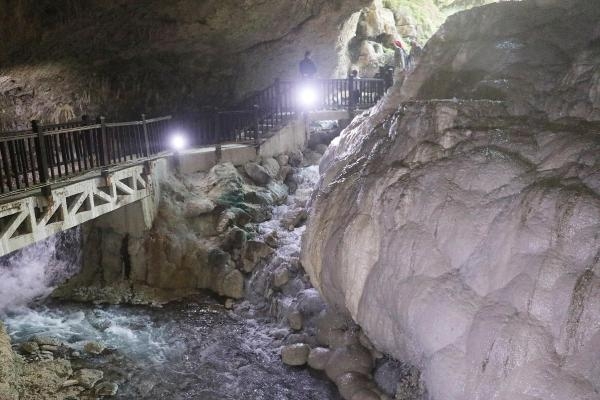 DENİZLİ'nin Honaz ilçesinde 'Yer altındaki gizli Pamukkale' olarak bilinen Kaklık Mağarası, Pamukkale'deki gibi beyaz traverten oluşumlarıyla dikkat çekiyor. Her yıl yaklaşık 45 bin yerli ve yabancı turistin ziyaret ettiği mağaraya yapılan tanıtımlarla ziyaretçi sayısının artması bekleniyor.