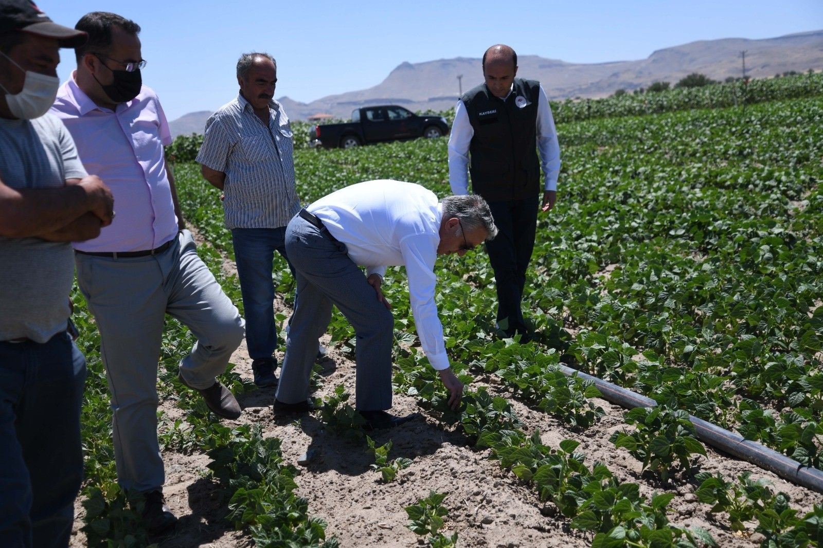 İl Tarım ve Orman Müdürü Mustafa Şahin, Bitkisel Üretim ve Bitki Sağlığı Şube Müdürü Mehmet Demirbaş, Yeşilhisar İlçe Müdürü Salih Bektaş ile birlikte Yeşilhisar ilçesine bağlı Gülbayır Mahallesi'nde yüzde 75 hibeli tohum alan Ali Cebeci'nin kuru fasulye ekimi yaptığı tarlada incelemelerde bulunarak, müdürlüğün teknik elemanlarından ürünün gelişimi ile ilgili bilgiler aldı. İncelemenin ardından açıklamalarda bulunan Şahin, "Bakanlığımızın uygulamaya koyduğu 'Bitkisel Üretimi Geliştirme' Projesi kapsamında ilimizde özellikle yemeklik dane baklagillerin üretimin artırılması için geçen yıl başlattığımız projelerin devamı olarak bu yıl da yüzde 75 hibeli 9 bin kilogram kuru fasulye tohumunun Yeşilhisar'da 67 üreticimize dağıtımını gerçekleştirdik. Bakanlığımızdan almış olduğumuz desteklerle 50 ton ve üzerinde bir miktar tohum tedariki yaptık. Tohum tedariki yaparken özellikle bölgemizde adapte olmasını görmek ve piyasada yerli ve milli çeşitlerimizin kabulünü göstermek amacıyla bu senede bir önceki senede olduğu gibi yerli bir çeşidimizi tercih ettik. Geçen yıl İlimizde Türkiye'de birim alandan alınabilecek en yüksek verimlerden birini aldık. Talas'taki üretimi yapılan yerli ve milli olan çeşidimizden dekarda 540 kilogram civarında verim alındı. Bu bölgede de yapacağımız üretimle aynı şekilde yüksek bir verim almayı hedefliyoruz. Yeşilhisar bölgesi, Kayseri'nin en önemli fasulye ekilişlerinin yapıldığı yerlerden bir tanesi. İlimiz genelinde 2021 üretim sezonunda yaklaşık 32 bin dekar alanda kuru fasulye ekimi yapılmış olup bunun 15 bin dekarı Yeşilhisar'da bulunmaktadır. Türkiye'de en önemli fasulye üretim alanlarından biri olmaya doğru gidiyoruz. Kayseri olarak hedefimiz alan artışından ziyade daha rantabl üretim yaparak hem ülkemize hem de üreticimize katkı sağlamak. Cumhurbaşkanımıza ve Bakanımıza bir kez daha teşekkür etmek istiyorum. Çünkü yüzde 75 hibe desteği ile vermiş olduğunuz tohumlarımızın tamamında üreticimizden gerçek anlamda olumlu bir geri dönüş alıyoruz. Bütün üreticilerimiz bunun çok yerinde bir karar olduğunu ve bu proje uygulamalarının devam etmesini talep ediyorlar. Bizde tabandan aldığımız bu bilgileri üst makamlara iletmeye çalışıyoruz. Kayseri'de; Erciyes'in serin esen rüzgarı ve soğuk sularıyla gerçekten lezzetli fasulyeler üretmeye başladık. Üreticimizin ve bizim isteğimiz üretimi daha da arttırarak kuru fasulyede de ihracatçı bir ülke olabilmek" ifadelerini kullandı.