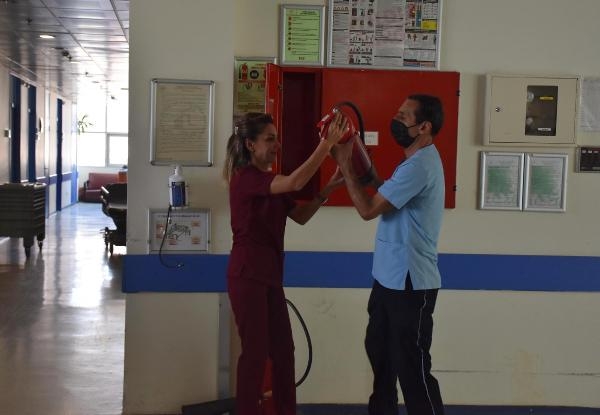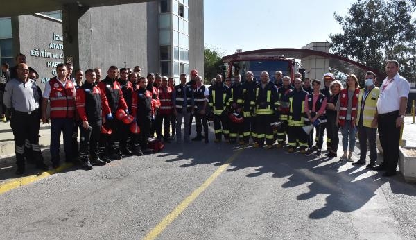 İZMİR Katip Çelebi Üniversitesi (İKÇÜ) Atatürk Eğitim ve Araştırma Hastanesi'nde çalışanların afet durumlarında meydana gelebilecek zararı en aza indirebilecek bilgi ve becerilerini artırmak amacıyla yangın tatbikatı gerçekleştirildi. İKÇÜ Atatürk Eğitim ve Araştırma Hastanesi Başhekim Yardımcısı Serdar Özkaya, "Bu tatbikatlar sayesinde herhangi bir gerçek olay yaşandığı zaman tam zamanlı gerçek bir müdahale yapılmış oluyor" dedi.