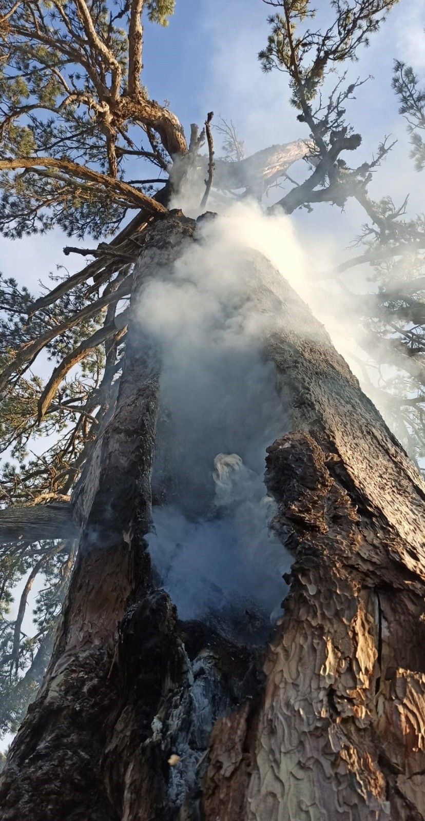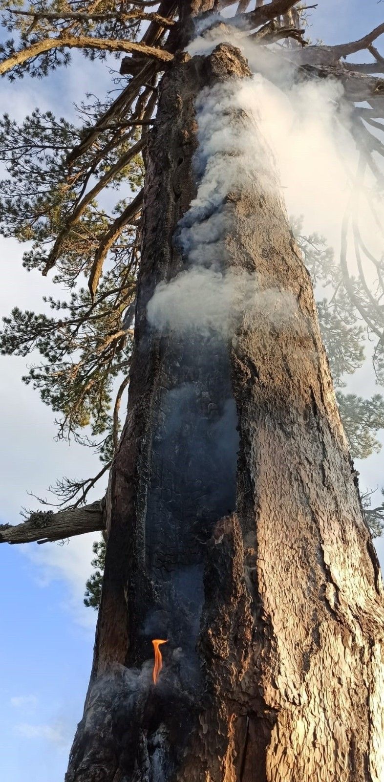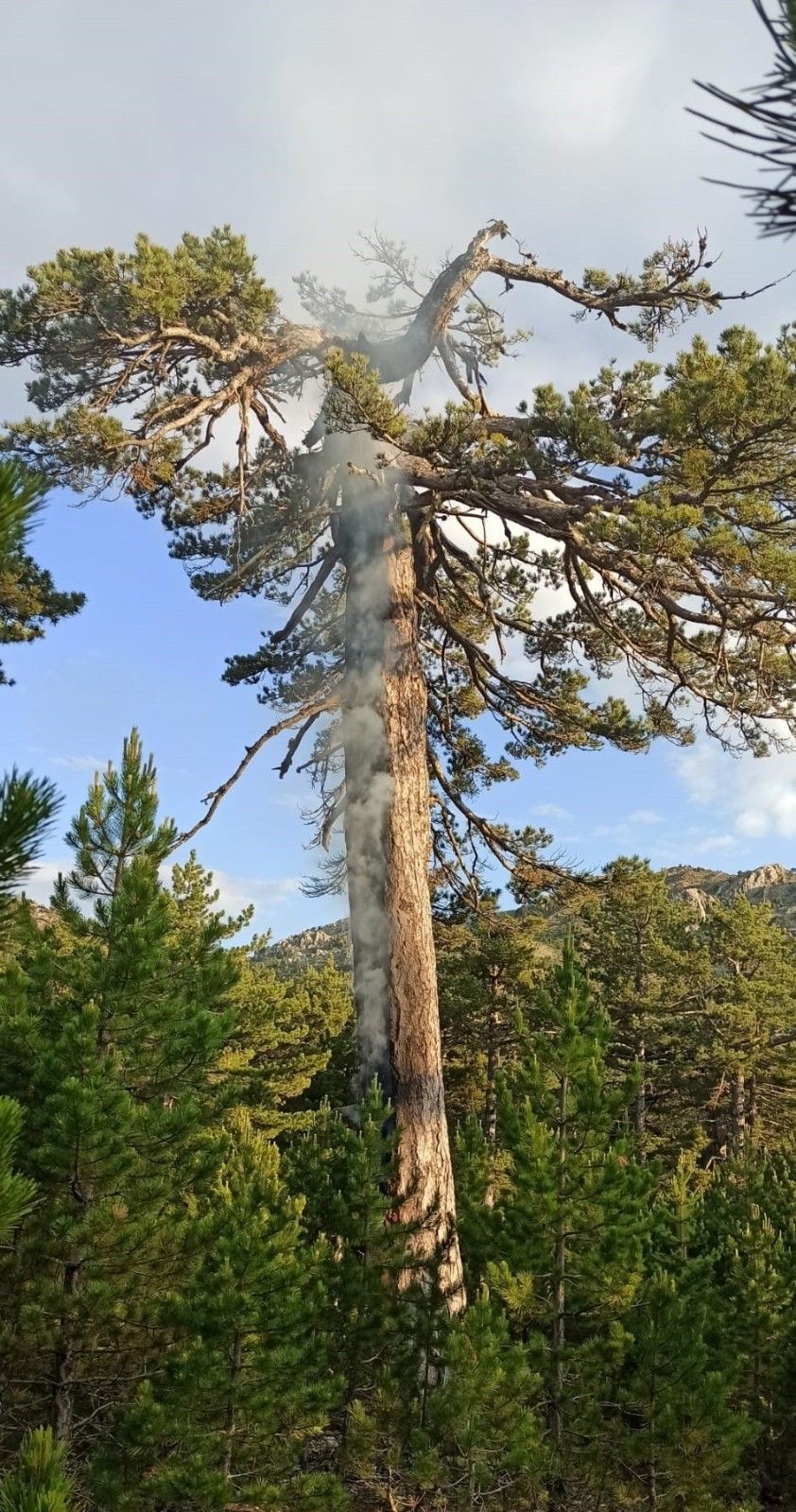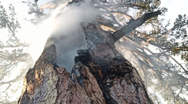 Yıldırım düşen asırlık çam ağacı 3 gündür yanıyor