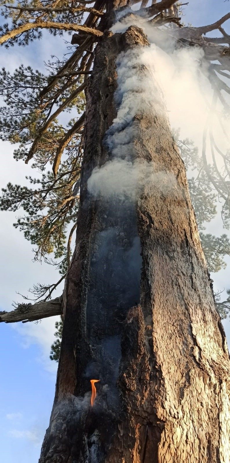 Asırlık çam ağacının dış kabuğundaki yapının tutuşmayı geciktirdiği, ancak yıldırımın neden olduğu aşırı ısınma sonucu iç kısımdaki kimyasal yapı nedeniyle iç yanmanın devam ettiği ifade edildi.