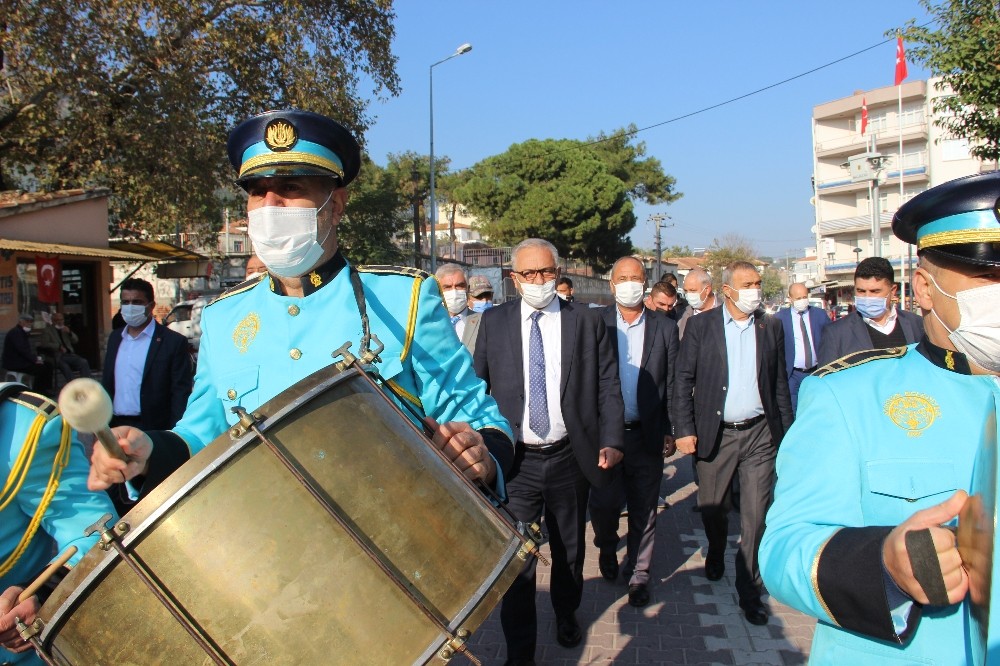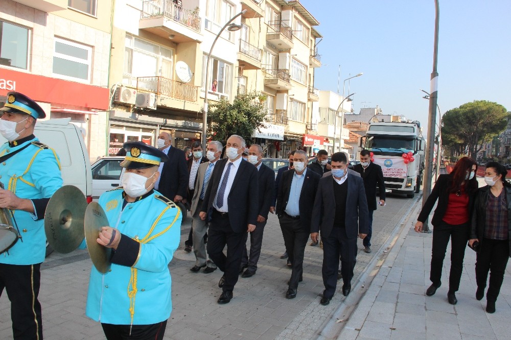 15 bin nüfuslu Manisa'nın Gölmarmara ilçesinde yeni yapılacak hidroelektrik santralinin dev boruları, şehir turuyla ve bando töreniyle tanıtıldı, şaşkınlık yarattı