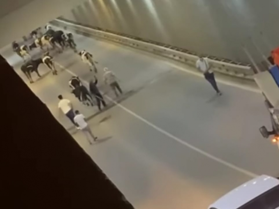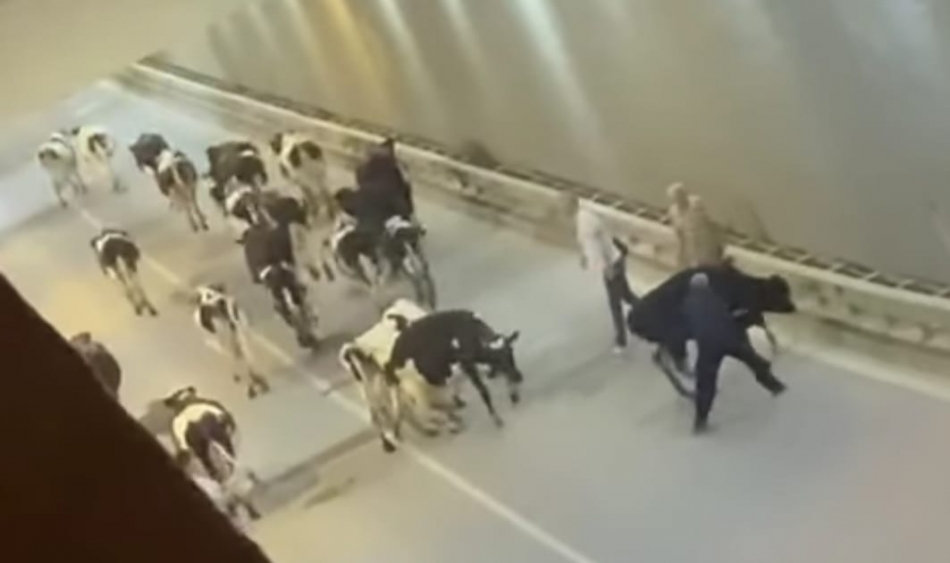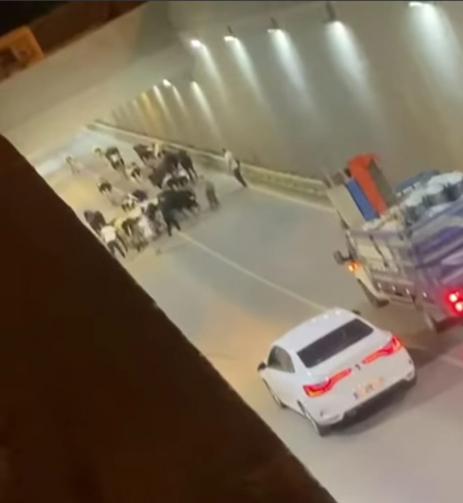 Birden inekler İzban raylarının altından geçen tünele girdi. İneklerin alt geçite girmesi nedeniyle trafik kitlendi. Sürücülere zor anlar yaşattı. Büyük bir uğraşın ardından, inekler sahipleri tarafından alt geçitten çıkarıldı. Trafikte normale döndü.