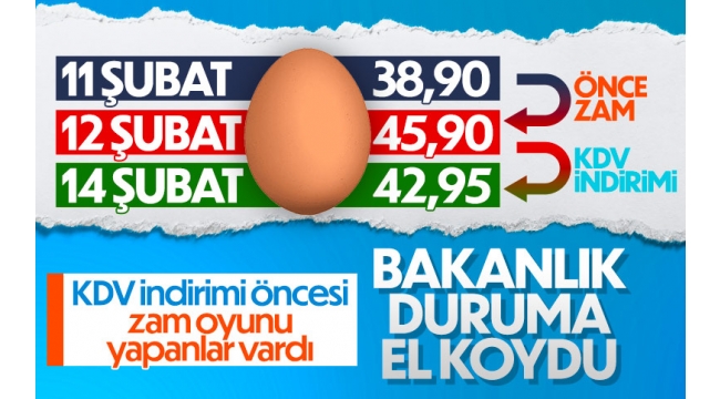 11 Şubat'ta 38 lira 90 kuruşa satılan 30'lu yumurtanın fiyatı, KDV kararının ardından 45 lira 90 kuruşa yükseltildi. 13 Şubat'ta yürürlüğe giren uygulama sonrası ise fiyatlar 42 lira 95 kuruşa düştü.