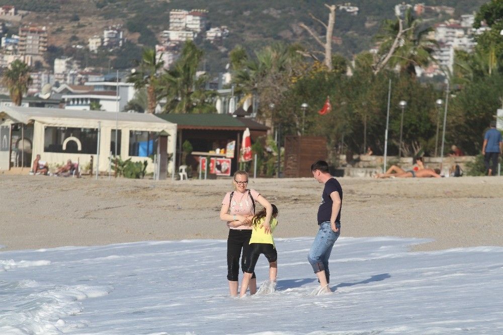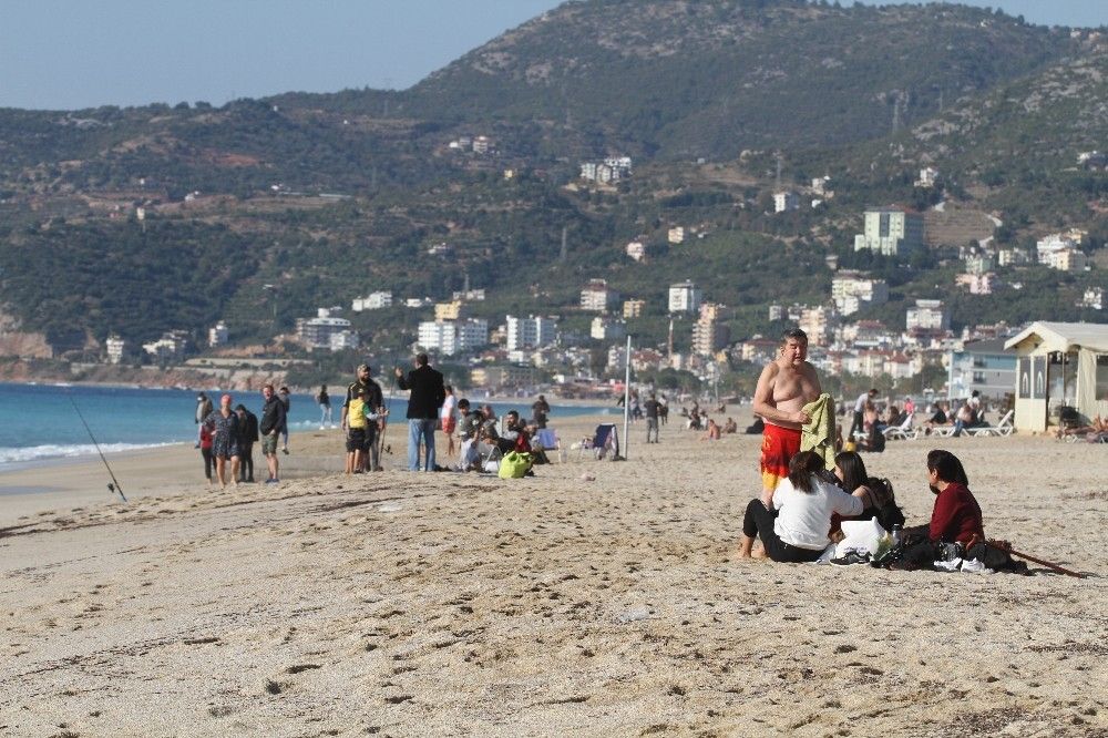 Türkiye'nin birçok bölgesinde kar yağışı ve soğuk hava etkili olurken, Alanya'da yazdan kalma günler yaşanıyor. Hava sıcaklığının 22, deniz suyu sıcaklığının ise 19.4 derece ölçüldüğü ilçede yerli ve yabancı turistler, güneşli havanın tadını denize girerek ve güneşlenerek çıkardı. Aralık ayının sonuna gelinmesine olmasına rağmen güneşli havayı fırsat bilen turistler, Kleopatra, Keykubat ve Damlataş plajlarında denize girerek güneşlenmenin keyfini yaşadı. Yerli Kumlara, şezlonglara uzanan tatilciler, kitap okudu ve uzun süre güneşlendi. Sahilde yürüyen çiftler ve oyun oynanan çocuklar ise renkli görüntüler oluşturdu.