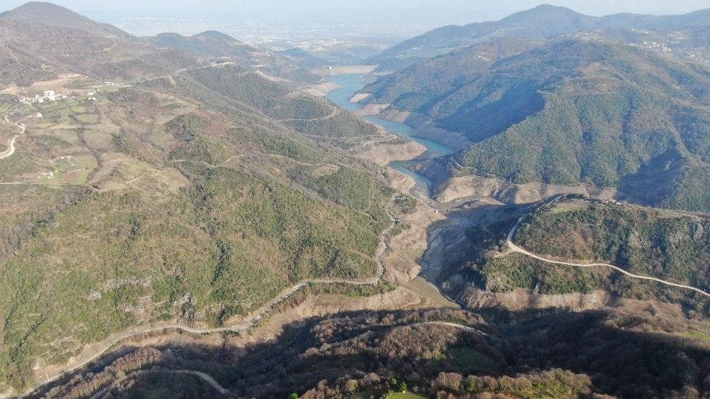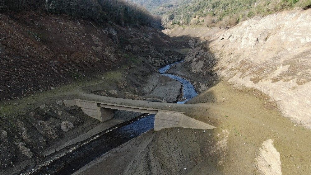 Sapanca Gölü'nden su takviyesinin yapıldığı Yuvacık Barajı havadan görüntülendi. Görüntülerde barajın büyük bir kısmının kuruduğu görüntülendi. Yıllar önce su altında kalan köprüler ise su çekilince ortaya çıktı.