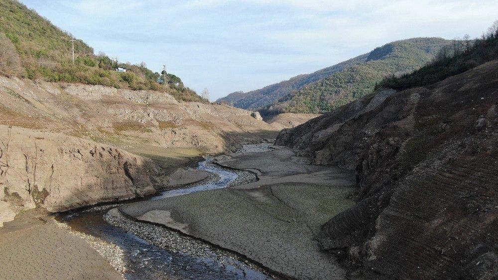 Kocaeli'de beklenen yağışların düşmemesi sonucunda kentin su ihtiyacının büyük ölçüde karşılandığı Yuvacık Barajı'nda su seviyesi yüzde 14'e düştü. Büyük bir kısmı kuruyan baraj havadan görüntülendi.
