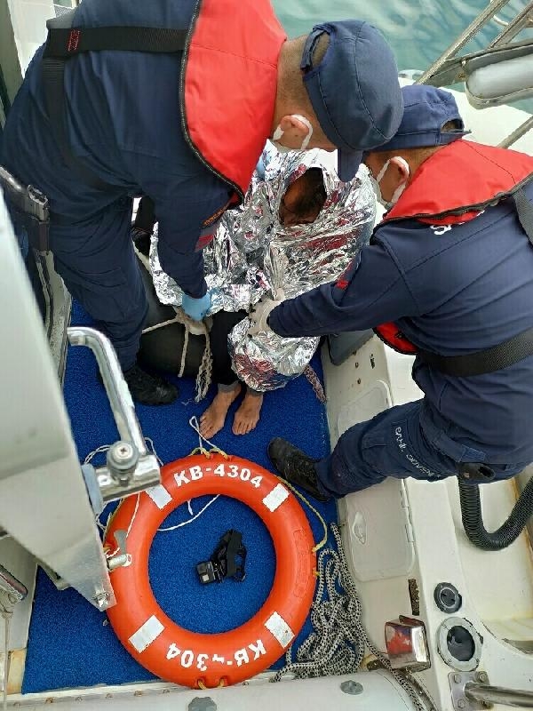 ÇANAKKALE'nin Ayvacık ilçesi açıklarında, Yunanistan'ın Midilli Adası'na yüzerek geçmeye çalışan, yorulunca da yardım talebinde bulunan kaçak göçmen, Sahil Güvenlik ekiplerince kurtarıldı.