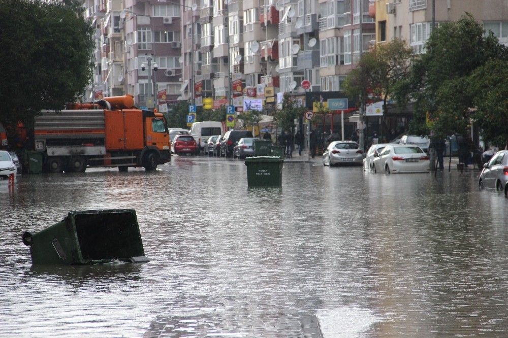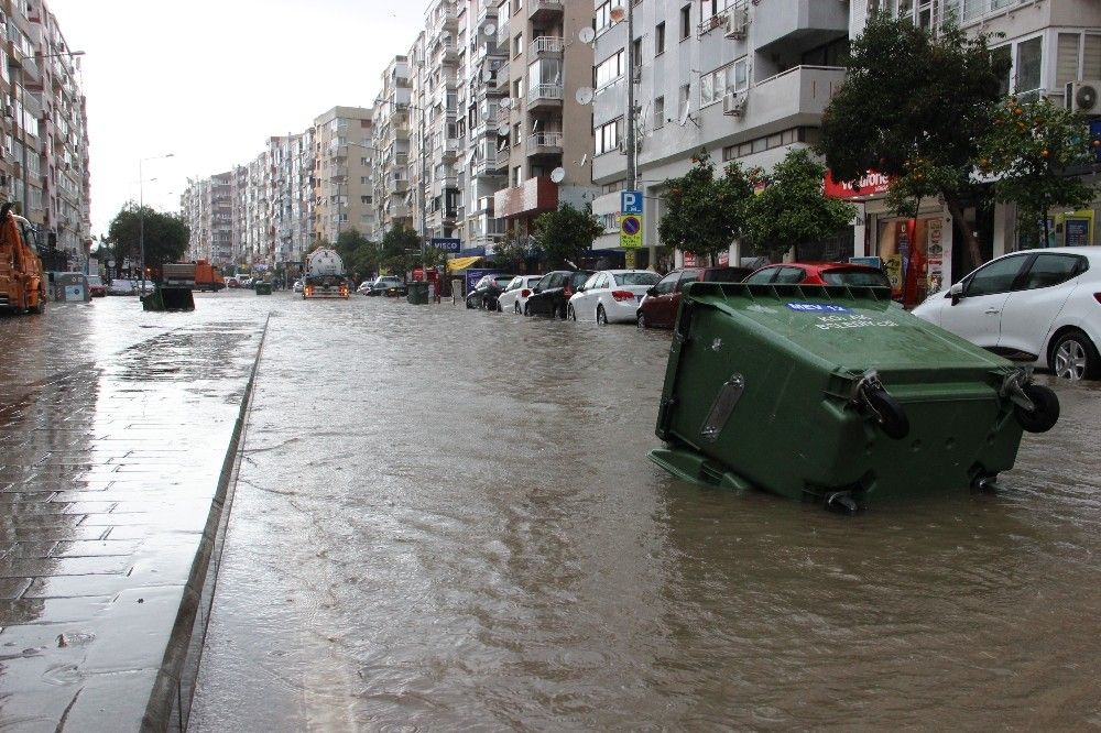 İzmir'de aşırı yağışlar derelerin taşmasına neden olurken, Konak ilçesinde pek çok araç sular altında kaldı. Güzelyalı semtindeki bazı vatandaşların oturduğu binaların girişinin suyla dolması nedeniyle vatandaşlar evlerinde mahsur kaldı.