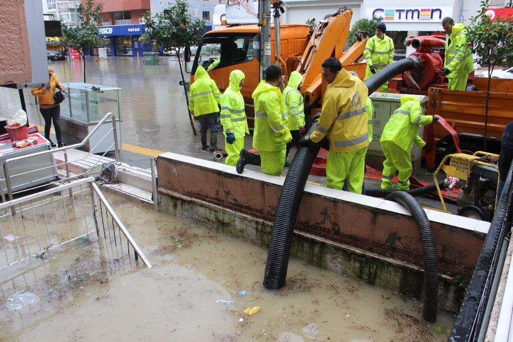 İl genelinde sağanak yağış ara vermeden devam ederken, ekiplerin de sel sularıyla mücadelesi sürüyor.