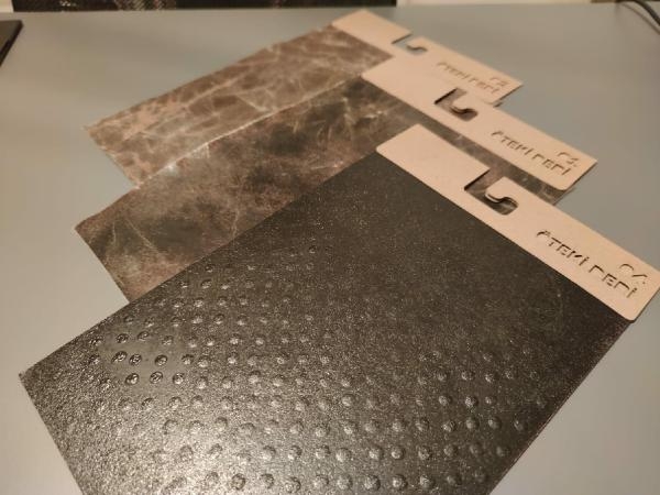 Çalışmalarına ilişkin bilgi veren Baloğlu ve Tekcan, "Zeytin, Ege için ayrı bir öneme sahip, bölgemize özgü bir değer. Biz de yaptığımız çalışmayla zeytinden bir katma değer daha yaratmış olduk. Pirina, zeytinin sıkıldıktan sonra zeytinyağı dışında kalan posasına verilen isim. İlk olarak pirinayı kırdırarak toz haline getirdik. Ardından da bunları çeşitli bağlayıcı malzemelerle karıştırarak bu yüzeyi, yani vegan deriyi ürettik. Vegan deri; aynı deri gibi görünen ve deri hissiyatı yaratan; ancak hayvan derilerinin yerine bitki bazlı malzemelerden yapılmış bir ürün anlamını taşıyor. Biz de tam olarak bu tanıma uyan bir tasarım gerçekleştirdik" dedi.