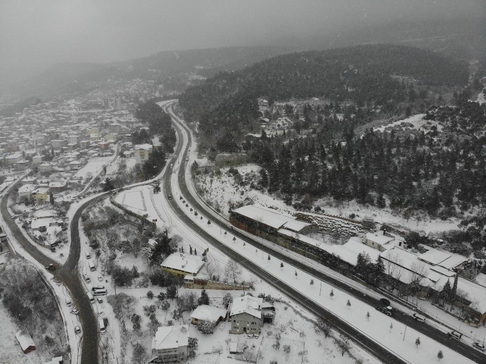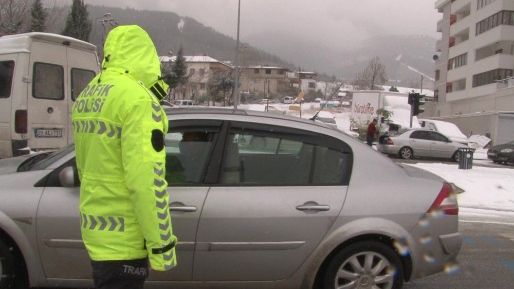 Denizli'de sabah saatlerinde başlayan yoğun kar yağışının ardından Denizli-Antalya istikametine giden sürücülerin zincirsiz kentten çıkışına izin verilmedi